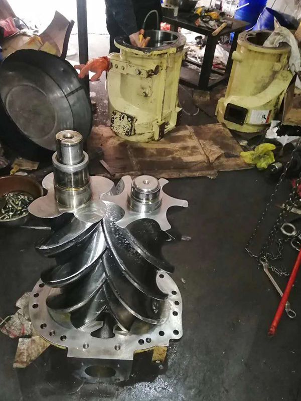 螺杆压缩机是容积式压缩机中的一种,空气的压缩是靠装置于机壳内互相平行啮合的阴阳转子的齿槽之容积变化而达到。转子副在与它精密配合的机壳内转动使转子齿槽之间的气体不断地产生周期性的容积变化而沿着转子轴线,由吸入侧推向排出侧,完成吸入、压缩、排气三个工作过程。